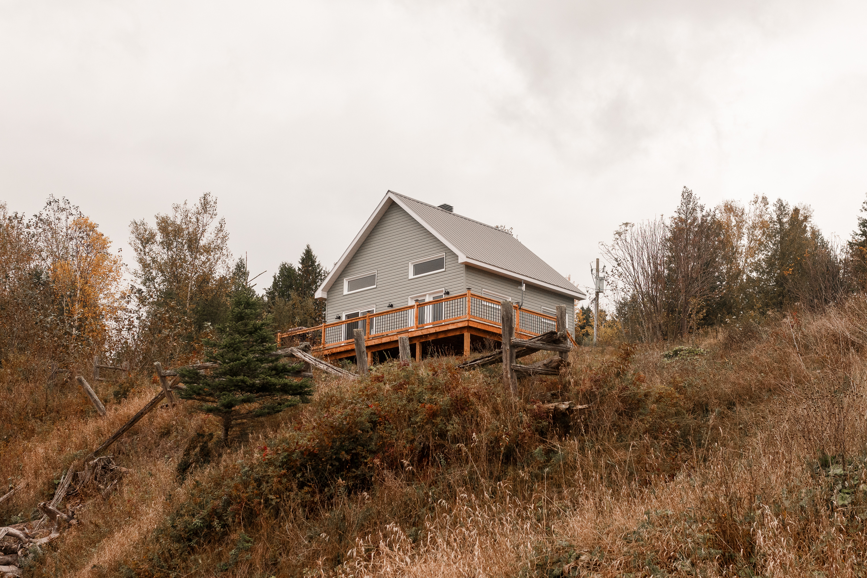 Chalet pour deux personnes vue sur la Baie, entouré de boisé pour plus d’intimité.