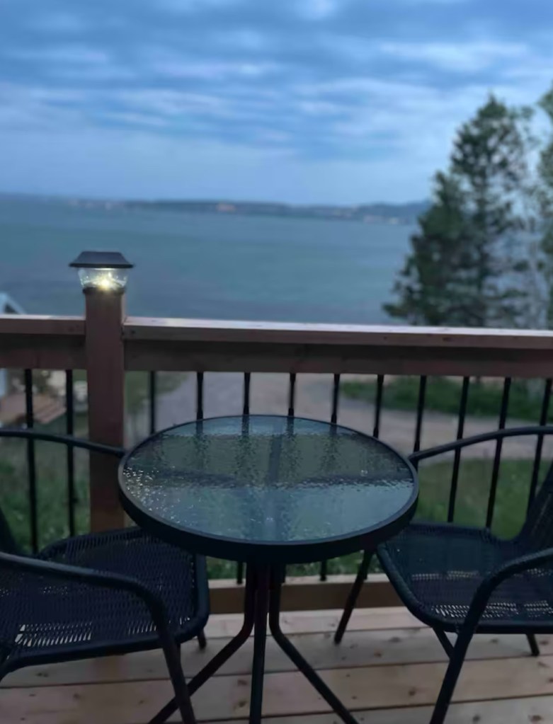 Chalet pour 4 personnes entièrement rénové à neuf vous offrant une vue à 180 degré sur la mer et ses couchers de soleil. Vous avez un coin feu extérieur ainsi qu’un BBQ et ensemble patio pour prolonger le temps passé à l’extérieur. Le chalet est doté d’une chambre avec lit double ainsi que d’un lit double à la mezzanine (hauteur restreinte ne permettant pas de s’y déplacer debout).